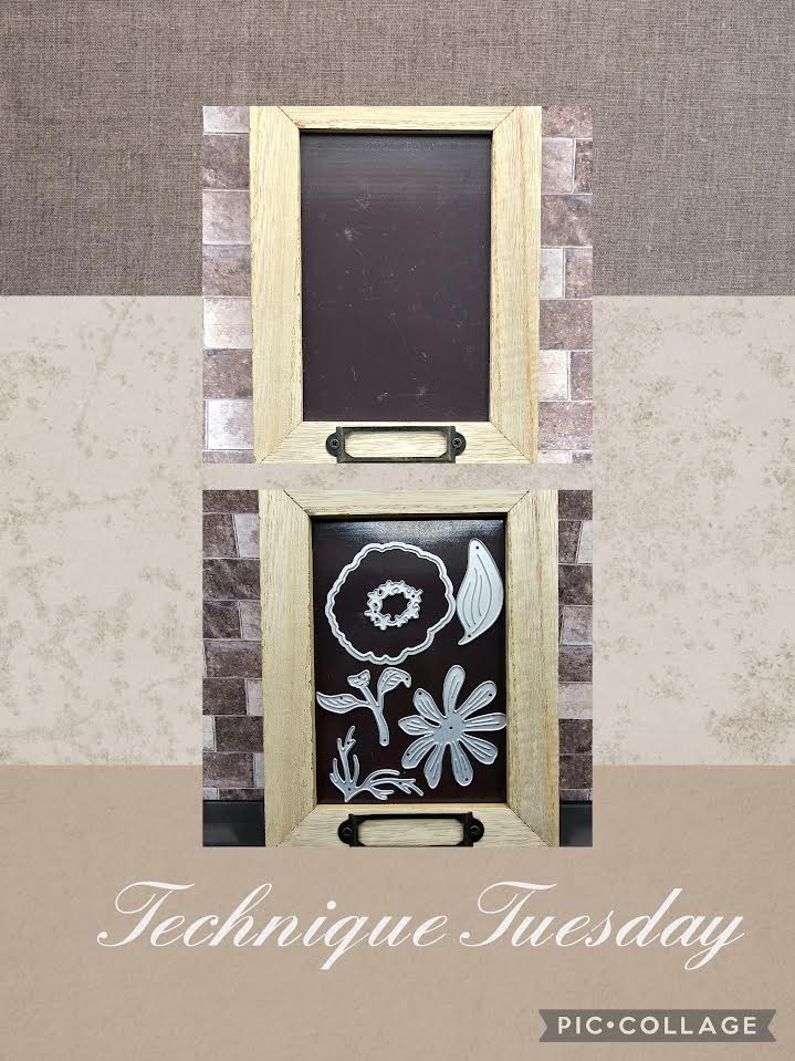 Technique Tuesday! When creating cards and projects I would tend to lose or misplace at least one die from a set. It wasn’t until I learned this tip. Simply take a frame (I used 5×7), remove the glass and place a magnet over the frame backing board, reassemble and there you go. The perfect place to lay dies when you’re working on a project. You will never lose a die again!